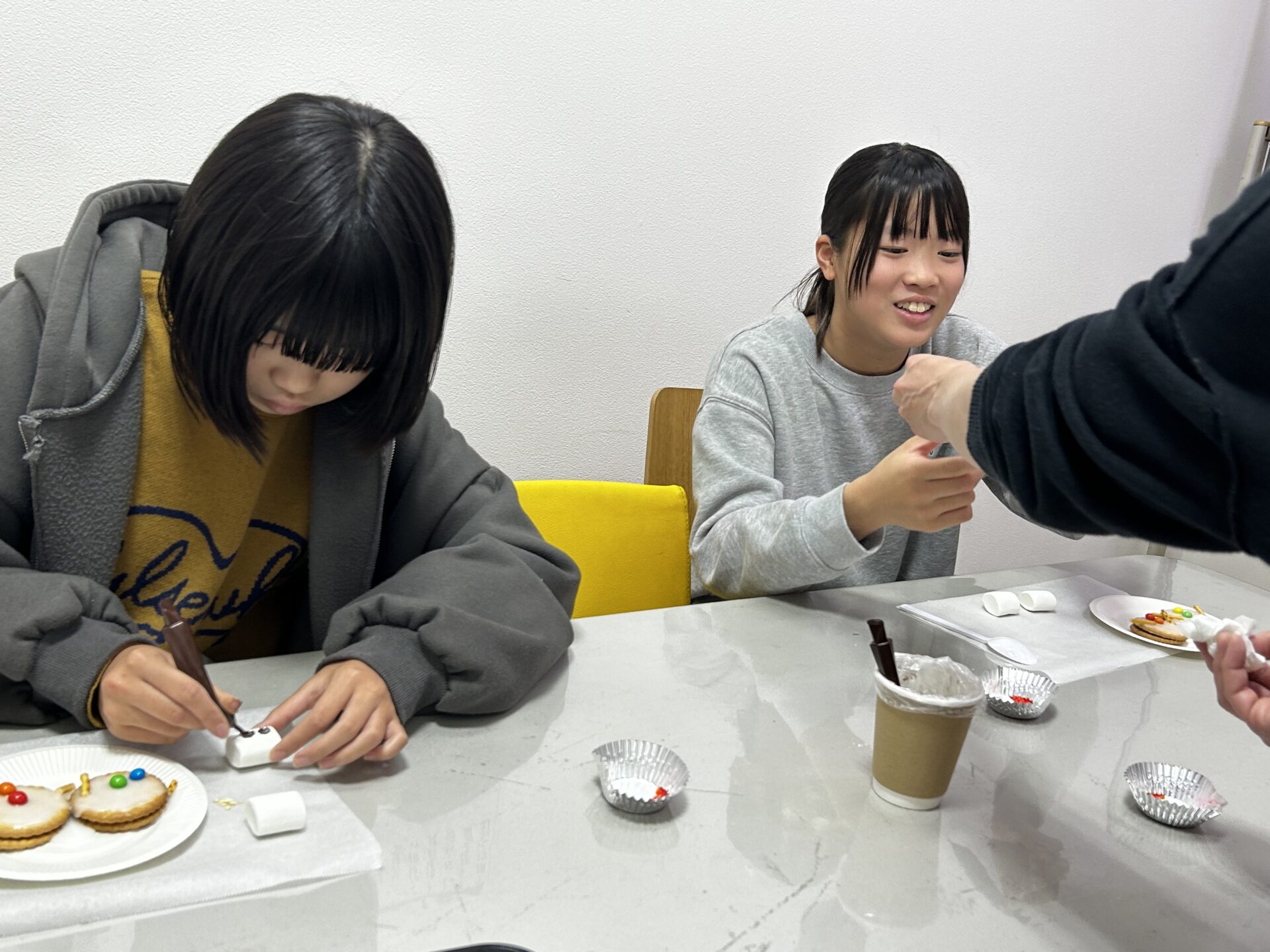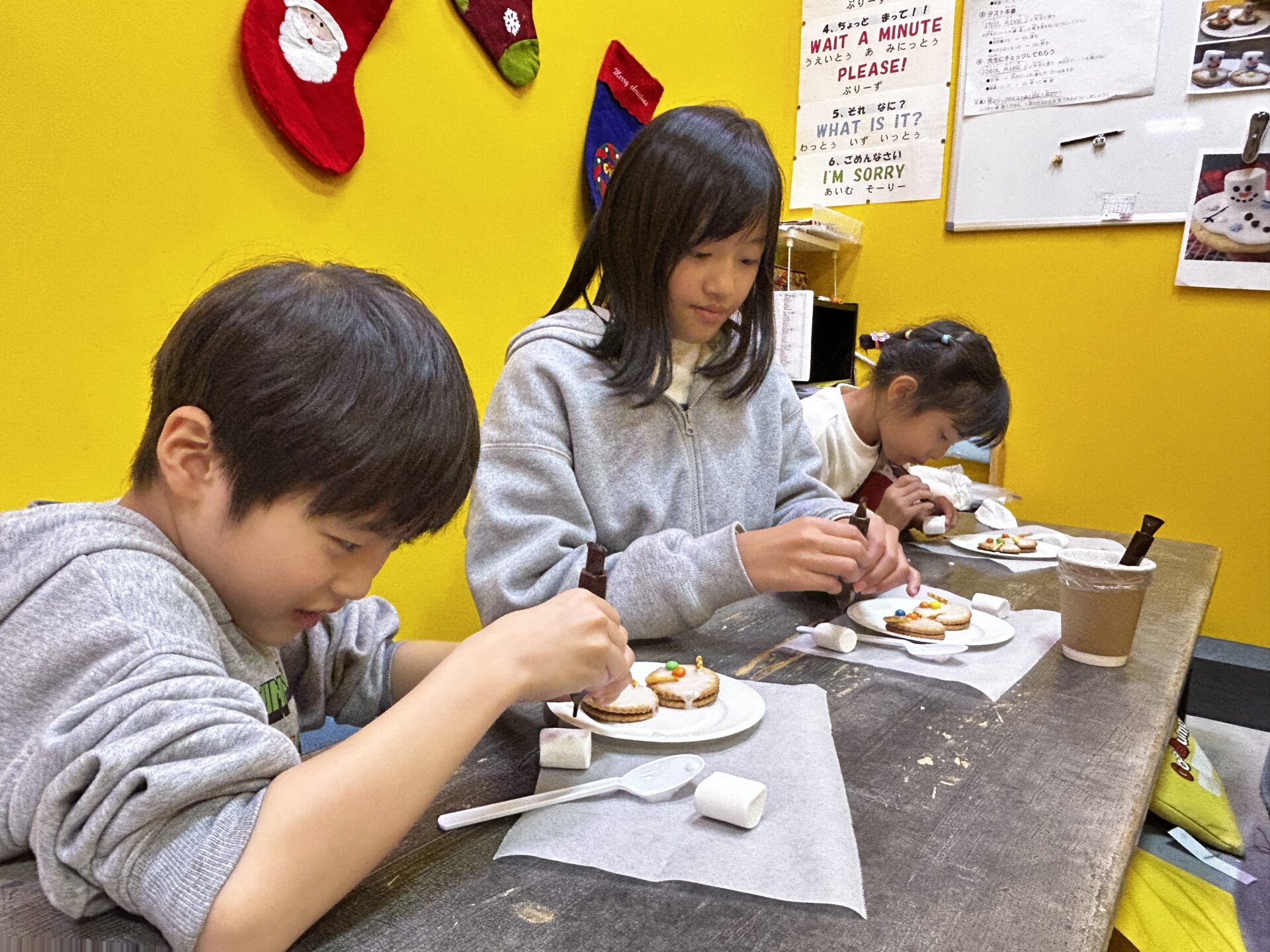 各生徒たちは、英語での課題をクリアし材料をもらい、英語で作り方の指示を聞くリスニングの実践をしながら、クリスマスのお菓子作りを楽しみました。